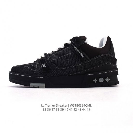 公司级 路易威登 Louis Vuitton Lv路易威登板鞋 2025年新款 时尚运动鞋潮厚底增高男女同款板鞋 舒适防滑底和百搭性霸屏整个时尚娱乐圈 细节调整完美主义 采用柔软帆布拼接鞋面 独家开模大底 侧边采用3D打印标志性Logo 尽显贵族时尚气息 配带正品全套包装 全新Lv路易威登Louis Vuitton Trainer Sneaker Low 休闲运动文化百搭板鞋