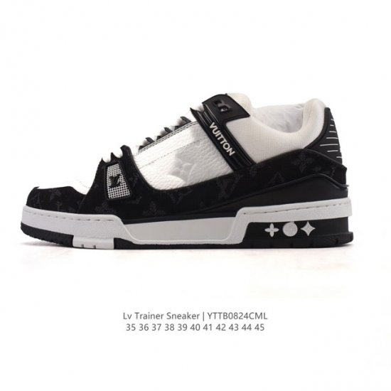 公司级 路易威登 Louis Vuitton Lv路易威登板鞋 时尚运动鞋潮厚底增高男女鞋。舒适防滑底和百搭性霸屏整个时尚娱乐圈,细节调整完美主义!采用柔软皮革拼接鞋面,独家开模大底, 侧边采用3D打印标志性Logo 尽显贵族时尚气息,配带正品全套包装。全新Lv路易威登Louis Vuitton Trainer Sneaker Low 休闲运动文化百搭板鞋。