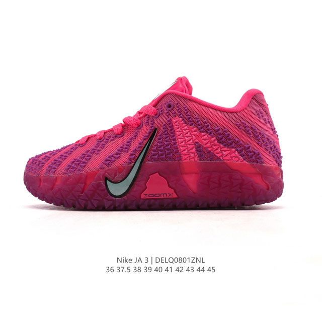新品公司级 耐克Ja 3球鞋:莫兰特 3代 篮球鞋 Nike Ja 3 绝妙演绎贾 莫兰特无畏大胆的狂野球风。Ja3外观较前两代有显著变化, Nike Ja 3 以全新外观延续贾 莫兰特的签名球鞋系列,既能提升其比赛表现,又助力下一代球员秀出风格和实力。Ja 3 的设计旨在展现莫兰特大胆且充满活力的设计风格,将其亲力亲为的创意融入鞋型设计中,彰显了他对球鞋文化持续不断的贡献。