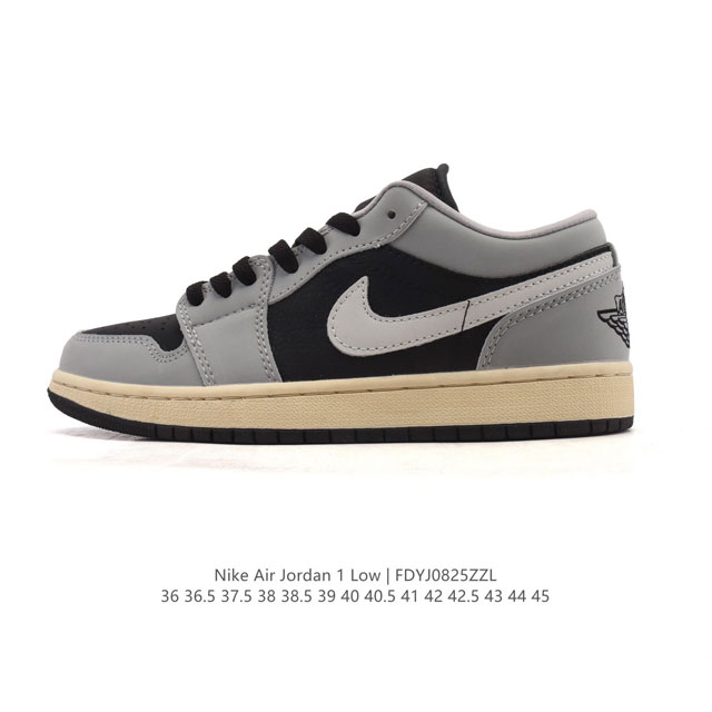 耐克 乔丹Air Jordan 1 Low Aj1 乔1 乔丹1代Aj1 低帮复古文化休闲运动篮球鞋。该鞋款从 1985 年元年款汲取设计灵感,焕新演绎简约经典外观,让人感到熟悉的同时又颇具新意。缝线细节搭配后跟刺绣 Wings 标志,彰显 Jordan 品牌与众不同的专属格调。皮革鞋面,塑就出众结构感与耐穿性。鞋底加入 Nike Air 缓震技术,造就轻盈缓震脚感,外底融入橡胶,铸就非凡抓地力,塑就日常佳选,后跟饰有 Wings 标志,鞋头打孔设计,泡绵中底。