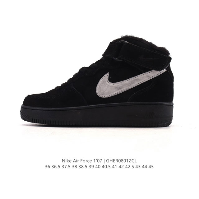 耐克 Nike Air Force 1 '07 空军一号含气垫 小白鞋 秋冬新款 加绒加厚 中帮魔术贴 百搭厚底增高休闲运动板鞋。柔软、弹性十足的缓震性能和出色的中底设计,横跨复古与现代的外型结合,造就出风靡全球三十多年的Force 1,直到今天还深受青睐。