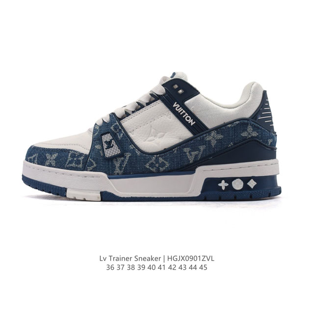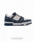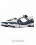公司级 路易威登 Louis Vuitton Lv路易威登板鞋 时尚运动鞋潮厚底增高男女鞋。舒适防滑底和百搭性霸屏整个时尚娱乐圈,细节调整完美主义!采用柔软皮革帆布拼接鞋面,独家开模大底, 侧边采用3D打印标志性Logo 尽显贵族时尚气息,配带正品全套包装。全新Lv路易威登Louis Vuitton Trainer Sneaker Low 休闲运动文化百搭板鞋。