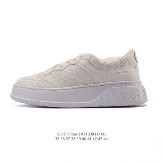 帝王版 Gucci 古驰 百搭休闲运动板鞋。明星同款 小红书爆款老花 小白鞋 厚底增高男女士运动鞋 皮革透气孔鞋面 真标 2025新色,经典高奢品牌Gucci古驰 复古松糕跟休闲运动鞋。