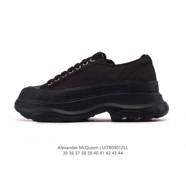 意大利高奢品牌-亚历山大 麦昆 Alexander Mcqueen Sole Sneakers 低帮时装厚底显高百搭休闲松糕跟板鞋 男女式小白鞋 厚底增高帆布运动鞋 新款 官方同步发售 。正确版组合大底 回弹度到位 耐磨又舒适 鞋底厚5.5Cm,显瘦显高显腿长。