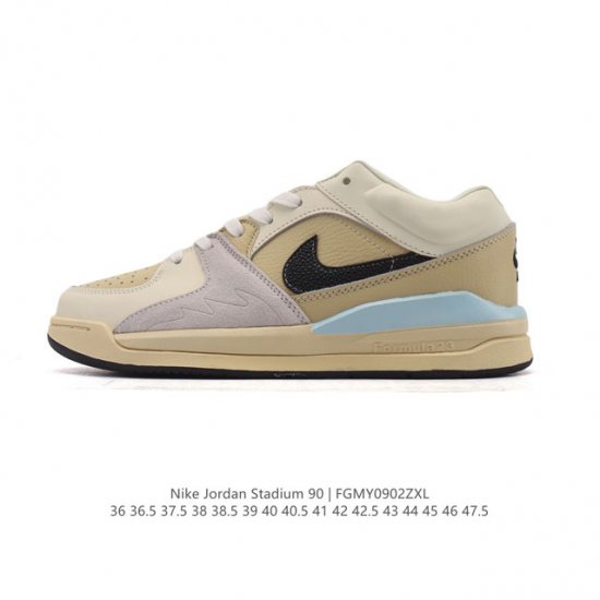 真标 耐克 Nike Air Jordan Stadium Aj90 潮流运动板鞋 Aj90 充满了对Tinkerhathield 原创设计的致敬 包括中足网状面板、前足外侧的鲨鱼齿轮廓、加垫鞋领和 Nk Air 鞋跟品牌 鞋子本身采用网眼、皮革和绒面革材料混合制成 散发出现代美感 并配备了该品牌全新的 Formula 23 足底缓震技术 Airjordan Stadium 90 鞋舌标签在鞋舌内侧印有“Flight”字样 完善了设计。
