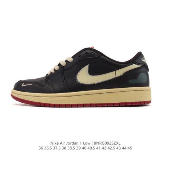 耐克 乔丹Air Jordan 1 Low Aj1 乔1 乔丹1代Aj1 低帮复古文化休闲运动篮球鞋。该鞋款从 1985 年元年款汲取设计灵感,焕新演绎简约经典外观,让人感到熟悉的同时又颇具新意。缝线细节搭配后跟刺绣 Wings 标志,彰显 Jordan 品牌与众不同的专属格调。皮革鞋面,塑就出众结构感与耐穿性。鞋底加入 Nike Air 缓震技术,造就轻盈缓震脚感,外底融入橡胶,铸就非凡抓地力,塑就日常佳选,后跟饰有 Wings 标志,鞋头打孔设计,泡绵中底。