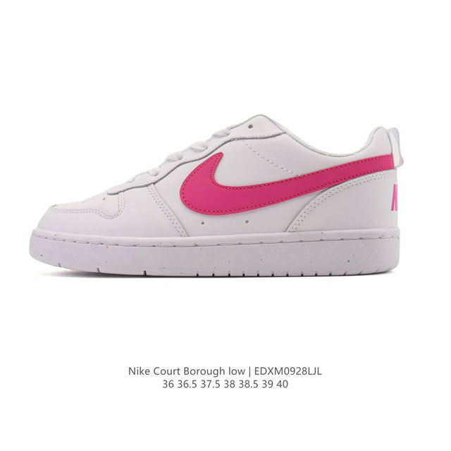 耐克 Nike 女子运动鞋 Court Borough Low 小空军低帮板鞋。1.其皮革材质的鞋面结合网眼鞋舌,在出众外观与质感的同时提供稳固支撑,并且提升透
