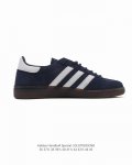 阿迪达斯 Adidas Handball Spezial 低帮三叶草学院风复古休闲板鞋 德训鞋 橡胶底柔软皮革经典运动鞋板鞋。圆头、缝合拼接设计、正面绑带、鞋舌部位附有标贴、经典三条杠装饰鞋侧,承载青春情怀的板鞋。品牌辨识度清晰,牛筋耐磨大底。