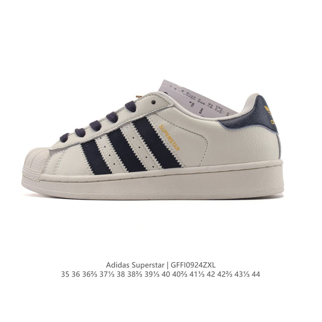 阿迪达斯 Adidas Superstar 2025年新款鞋子 经典贝壳头系列 新款休闲板鞋潮流女士运动鞋 。鞋面皮革拼接材质 标志性的贝壳鞋头,简约的线条。就连版型和比例,都在向1982年的鞋款致敬。可谓“形神兼备”的复刻。无论在哪,无论去哪,你或许都需要这样一双既舒适又时尚的鞋。1970年问世于篮球场的Adidas Superstar,集舒适与时尚于一身。这款经典鞋,缀低调图案,灵感源自公共交通地图。设计简约,旨在伴你出行。心动不如行动,系好鞋带,出发吧。