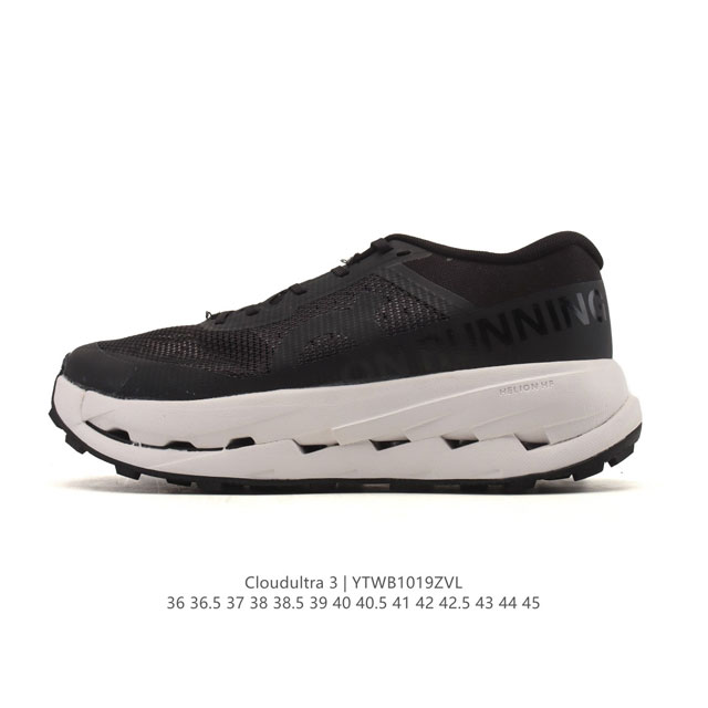 新品公司级 昂跑 On 男女子轻量透气越野跑鞋25新品 Cloudultra 3 防滑减震户外运动鞋,On昂跑发布Cloudultra 3越野跑鞋,展现更纯正的户外基因。中底采用Helion Hf Hyperfoam泡棉,提供长时间高效缓震反馈。外底升级为品牌自研的Missiongrip配方,全人字纹齿花设计增强户外抓地力,厚度薄且轻量化。鞋面采用类似Mono纱线材质,结合Tpu提升支撑性和速干性能。 尺码: 36-45含半码 编码: Ytwb1019Zvl
