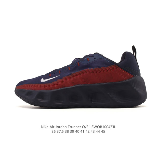 新品公司级 耐克 Nike Jordan Trunner O S 运动篮球鞋,是 耐克旗下 Jordan Brand 推出的复古跑鞋,以 90 年代田径鞋为灵感设计,融合运动与休闲风格。采用灰白基调搭配红蓝撞色设计,鞋侧有不对称的 红蓝 Swoosh 标志和隐藏式 3M 反光条,鞋面采用 透气网布与 翻毛皮材质结合,兼具复古气质与街头潮流感。中足搭载 Tpu 笼式结构提供支撑,鞋底复刻田径跑道纹路。 搭载 Reactx 缓震技术,提供回弹与落地缓冲保护;加宽鞋楦设计适配亚洲脚型,外底采用 Cushlon