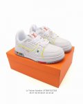 路易威登 Louis Vuitton Lv路易威登板鞋 时尚运动鞋潮厚底增高男女鞋。舒适防滑底和百搭性霸屏整个时尚娱乐圈,细节调整完美主义!采用柔软皮革拼接鞋面