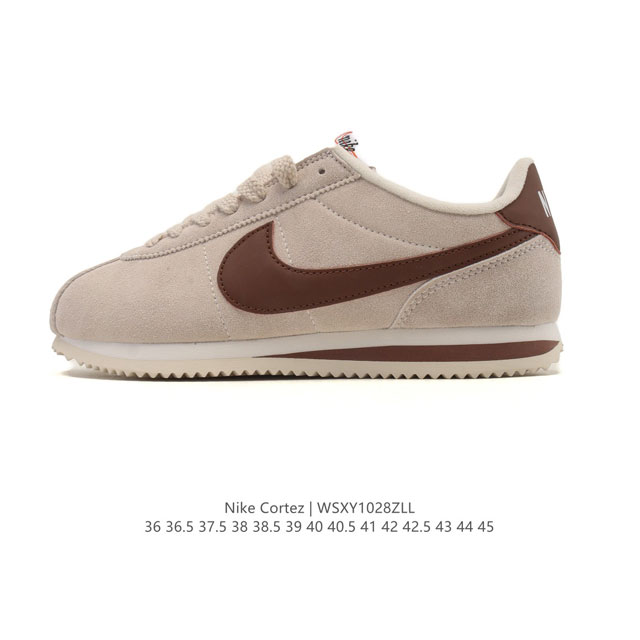 Nike Classic Cortez Nylon 耐克阿甘鞋男女子运动鞋。秉承元年款经典风格,糅合防水鞋面设计,令双足保持干爽舒适。防水锦纶鞋面强势抵御风雨侵袭,缔造轻盈防护效果,传统鞋带系统和覆面设计增强贴合感,提升耐久性,彰显经典风格。低帮剪裁打造舒适脚感,提升运动自由度,Eva 泡棉中底轻盈缓震。纯色橡胶外底搭配人字形底纹,缔造出色耐久性和多向抓地力。 类型: 男女鞋 货号:Dz2795 码数:36-45含半码 编码:Wsxy1028Zll