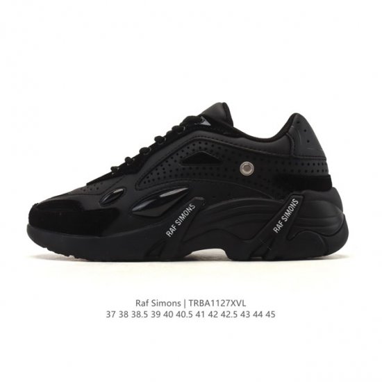 新品公司级 拉夫 西蒙斯 Raf Simons 舒适百搭 低帮 老爹鞋 男女同款Raf Simons橡胶鞋底系带圆头徽标拼接休闲运动鞋 黑色 37拼接设计、穿孔