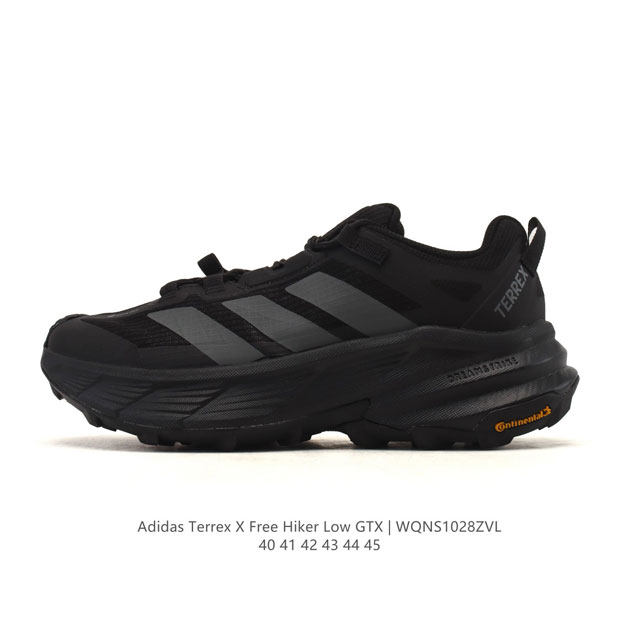 新品公司级 阿迪达斯 Adidas Terrex Free Hiker Sl Gtx 舒适百搭跑步鞋 男款 Adidas Terrex Free Hiker Gtx 是一款专为户外徒步设计的专业鞋款,结合了舒适性与抓地力,采用Gore-Tex技术实现防水透气功能。Gore-Tex技术:鞋面采用Gore-Tex镀膜,有效阻挡雨水渗透,同时保持脚部干爽透气,适合多变的户外天气。 Continental橡胶大底:提供出色的抓地力,尤其在湿滑路面 如岩石、泥地 上防滑性能优异。 轻量化设计:男款42.5码单只重量