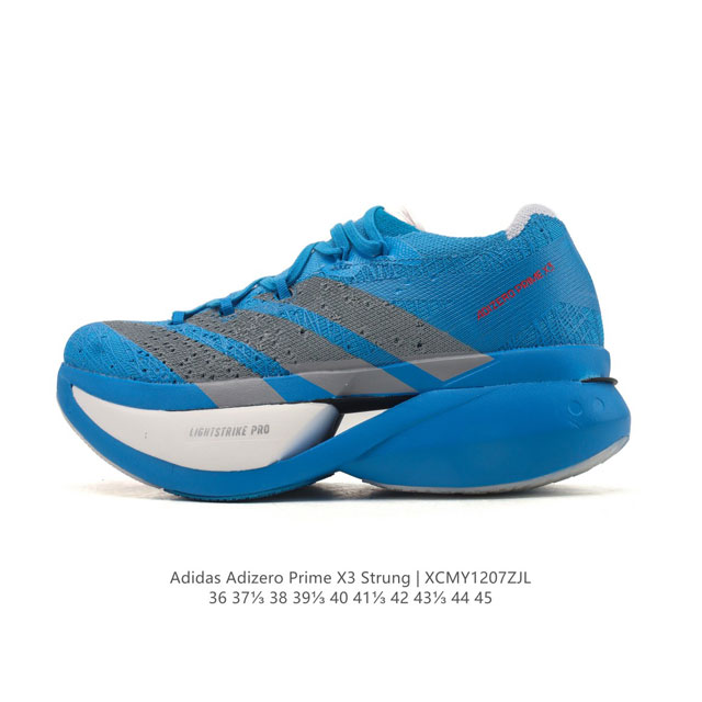 新品公司级 Adidas Adizero prime X3是阿迪达斯推出的一款专业跑步鞋,主打轻量化设计和双碳板结构,适合追求速度与科技体验的跑者。双碳板结构: