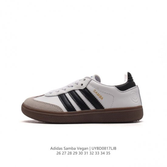 童鞋 Adidas 阿迪达斯 儿童运动鞋 头层皮 三叶草sambavegan休闲鞋 德训鞋 复古板鞋经典运动鞋。采用环保设计的焕新adidas Samba经典鞋,力求伴你前行。继承原版风格和质感,同时采用环保设计,旨在助力打造美好未来。含标志性t形鞋头,旨在保留往日足球风。 常规型剪裁 系带设计 穿着舒适 标志性经典鞋 橡胶外底 合成衬里 该产品所用材质不含动物制品。