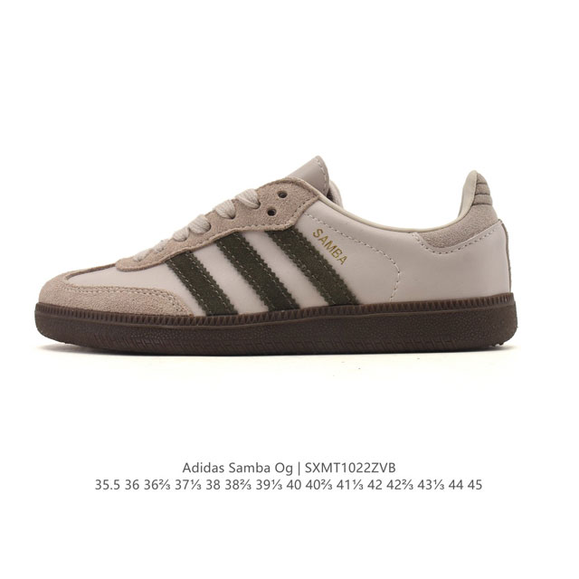 阿迪达斯 德训鞋 Adidas Originals Samba Og Shoes 经典运动鞋小白鞋 T头鞋 男女鞋 彰显休闲摩登风情的时尚经典鞋。它诞生于50年代的足球场,随后走向街头和秀场。Adidas Samba自成一格,堪称时尚标杆。这款Samba Og经典鞋,采用柔软皮革鞋面,搭配橡胶外底,舒适休闲。含锯齿三条纹和别致T形鞋头,致敬Samba的传统设计。缀低调烫金细节,更添型格。忠于本源,热爱不老。 常规版型 系带设计 皮革鞋面 织物衬里 橡胶外底。 货号:Jr9446 码数:35.5-45含半码