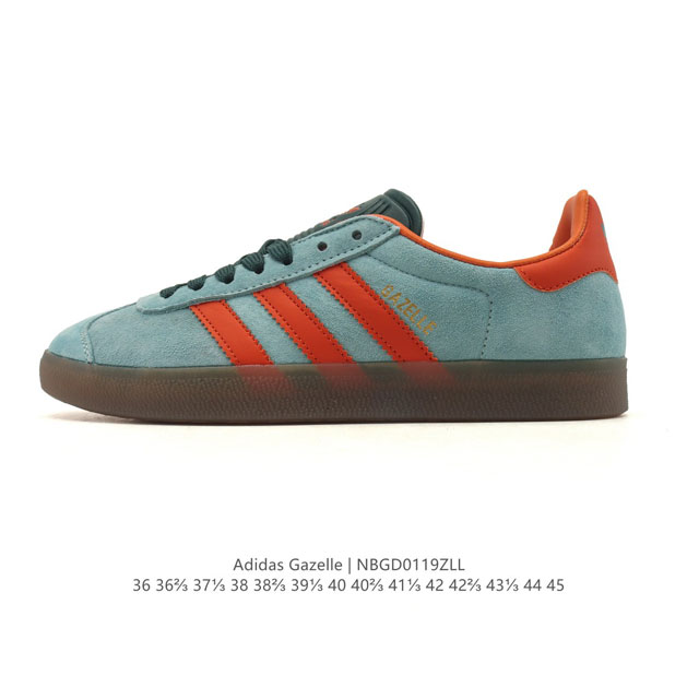 阿迪达斯 Adidas 三叶草Gazelle系列休闲鞋男女经典运动鞋,鞋身织物材质和简单百搭的特点,让 Gazelle 一直活跃在街头。T字鞋头、压模鞋舌以及蜂