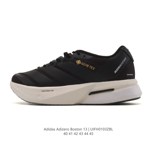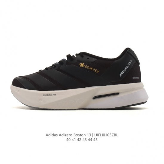 FFF 阿迪达斯 Adidas 马拉松跑鞋波士顿13长距离跑鞋 Adizero Boston 13,训练长跑跑步鞋 男款,中底技术:前掌采用更大体积的Lightstrike Pro材料,后跟部分则使用Lightstrike 材料。这种设计提供了更好的缓震和弹性,特别适合前掌落地的跑者能量传递系统:中底加入玻纤[Energyrods 能量碳柱,增强了能量的传递和推进力足弓设计:鞋面采用加宽的足弓设计,提供了更好的支撑性,特别是对于外翻跑者来说,这种设计能够有效减少受伤的风险通过在中底和大底科技的创新,相较上