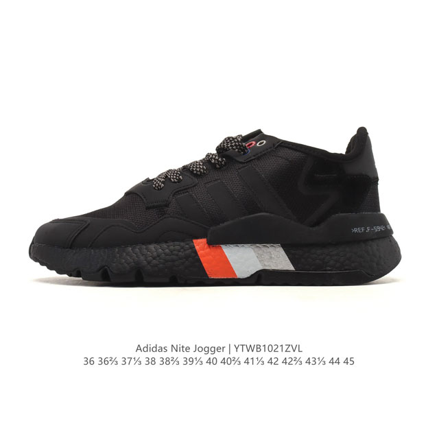 阿迪达斯 Adidas Nite Jogger 全新配色王嘉尔代言款男女士运动鞋,透气网面鞋面 夜行者 3M反光 真爆大底复古跑鞋。 针织透气网布搭配皮革拼接打