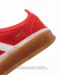 阿迪达斯 Adidas Originals Gazelle Indoor复古三叶草防滑透明橡胶板鞋经典运动鞋。这款经典鞋,忠于原版设计,缀撞色三条纹和鞋跟饰片。采用柔软皮革鞋面,穿着舒适,搭配生胶外底,风格复古。用不同材料制作这款修长复古的从1970年代开始就很受欢迎的网球鞋。Gazelle Indoor拥有包边更宽的T字型鞋头,Gazelle开始将皮革材质引入训练鞋设计之中,从而减轻了运动员双脚的负担。当年这一改动也是为了更好的保护运动员的前掌,以及Gucci X Adidas Gazelle 系列就是