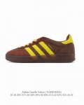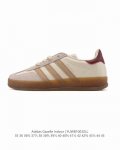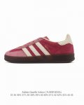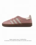 阿迪达斯 Adidas Originals Gazelle Indoor复古三叶草防滑透明橡胶板鞋经典运动鞋。这款经典鞋,忠于原版设计,缀撞色三条纹和鞋跟饰片。采用柔软皮革鞋面,穿着舒适,搭配生胶外底,风格复古。用不同材料制作这款修长复古的从1970年代开始就很受欢迎的网球鞋。Gazelle Indoor拥有包边更宽的T字型鞋头,Gazelle开始将皮革材质引入训练鞋设计之中,从而减轻了运动员双脚的负担。当年这一改动也是为了更好的保护运动员的前掌,以及Gucci X Adidas Gazelle 系列就是
