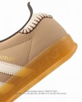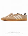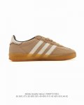 阿迪达斯 Adidas Originals Gazelle Indoor复古三叶草防滑透明橡胶板鞋经典运动鞋。这款经典鞋,忠于原版设计,缀撞色三条纹和鞋跟饰片。采用柔软皮革鞋面,穿着舒适,搭配生胶外底,风格复古。用不同材料制作这款修长复古的从1970年代开始就很受欢迎的网球鞋。Gazelle Indoor拥有包边更宽的T字型鞋头,Gazelle开始将皮革材质引入训练鞋设计之中,从而减轻了运动员双脚的负担。当年这一改动也是为了更好的保护运动员的前掌,以及Gucci X Adidas Gazelle 系列就是