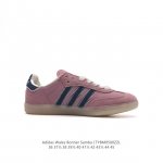 阿迪达斯 Adidas Samba新款 德训鞋 时尚休闲运动板鞋- Wales Bonner 的 Adidas Samba “Studded”亮相,Adidas Samba “Studded” 包的灵感源自她的 Fw23 系列和饰钉图案,压在鞋面条纹上的光滑金属铆钉凸显了这一点。 她的标志性缝线风格显而易见,鞋跟标签固定在鞋面,鞋舌瓣上粘合有阿迪达斯和威尔士邦纳文字标志。每个配色仅制作了 750 双,这个独特的编号通过 1 750 记号笔刻在鞋盒上以及鞋舌下方。 但是,它们并未单独连载。