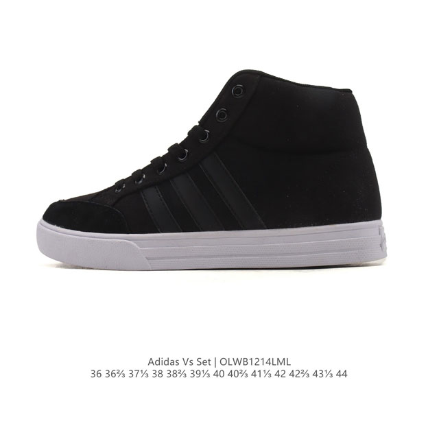 阿迪达斯 Adidas Vs Set 男子高帮防滑板鞋休闲鞋 场下篮球鞋造型复古的运动鞋,这款中帮运动鞋,旨在伴你休闲中舒适生活。鞋面缀三条纹,展现复古情怀。 系带设计 皮革帆布鞋面 鞋头盖饰面 缀三条纹的中帮运动鞋 橡胶全包大底。 DDD 货号:668376 Ddd 尺码:36-44含半码 Ddd 编码:Olwb1214Lml DDD