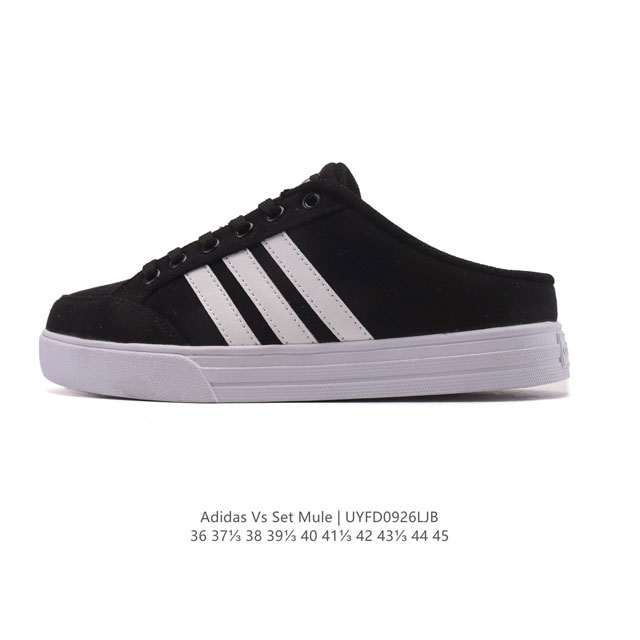 / Adidas 阿迪达斯Vs Set Mule 经典休闲帆布板鞋 半拖 包头凉鞋 懒人一字蹬运动凉鞋,这款Adidas采用套入式结构和无后跟设计,力求让舒适感更上
