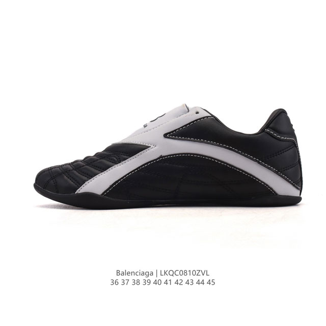 新品 Balenciaga 巴黎世家Balenciaga 全新 Zen 运动鞋 秋冬新款 男女士休闲运动鞋 617540W2Cg1 德训鞋 复古运动板鞋竞派跆拳道鞋武术鞋 太极鞋练功鞋比赛训练男女耐磨透气防滑 战狼道鞋,鞋底材质:橡胶,鞋面主材质:皮革拼接,借鉴了拳击鞋的设计。Track 系列成为 Balenciaga 运动鞋的王牌,就连运动潮牌都对 Track 偶有借鉴,可见其设计的成功。有了拳头产品也要多点开花,日前 Balenciaga 便开售了名为 Zen 的全新运动鞋设计,整体借鉴拳击鞋风格,以