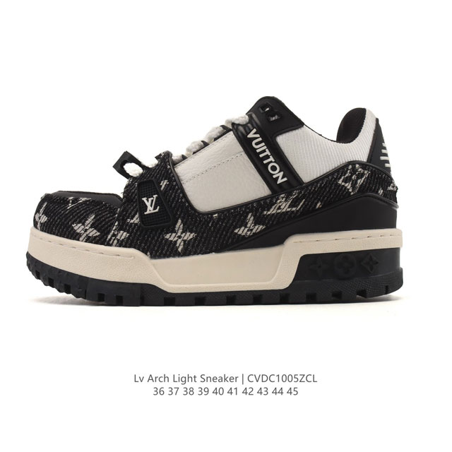 路易威登louis Vuitton Arch Light Sneakers Lv真皮拼色减震网面运动弓型舞蹈复古老爹运动鞋。原装配件5D效果礼盒及全套原装配件包