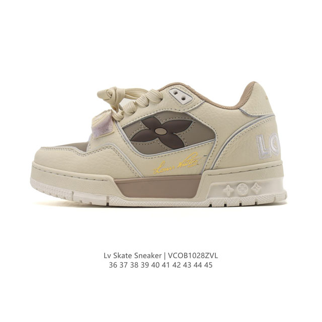 / 公司级 Lv Skate Sneaker 路易威登 2025年新款运动板鞋 蛇年限定 春夏秀场初次亮相,此次以粒面牛皮革焕新呈现。加垫鞋领和鞋舌援引滑板鞋设计,