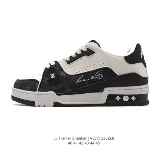 路易威登 Louis Vuitton Lv路易威登板鞋 时尚运动鞋潮厚底增高男鞋。舒适防滑底和百搭性霸屏整个时尚娱乐圈,细节调整完美主义!采用柔软皮革拼接鞋面,独家开模大底, 侧边采用3D打印标志性Logo 尽显贵族时尚气息,配带正品全套包装。全新Lv路易威登Louis Vuitton Trainer Sneaker Low 休闲运动文化百搭板鞋。 DDD 尺码:40-45 Ddd 编码:Vcjk1226Zlb DDD