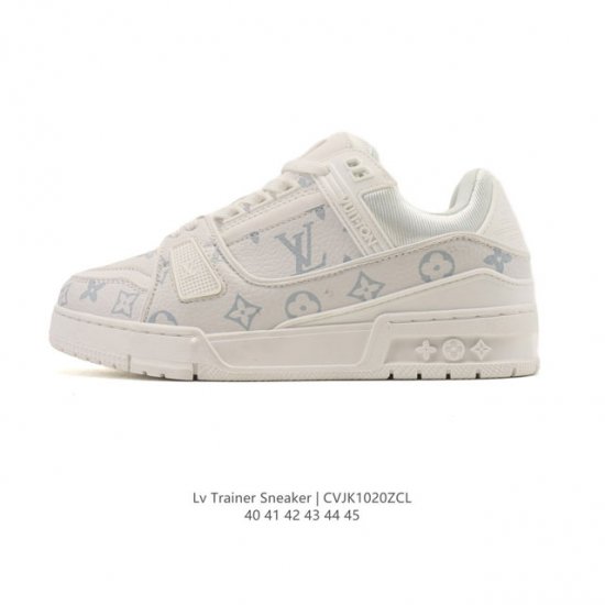 公司级 全新LV路易威登Louis vuitton Trainer Sneaker Low休闲运动文化百搭篮球板鞋 运动小白鞋厚底增高光滑牛皮平底鞋休闲鞋 时尚