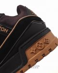 / Lv Trainer Maxi 小胖丁 加垫鞋领和鞋舌援引滑板鞋设计,科技鞋带和橡胶外底完善整体。粒面牛皮革网面拼接鞋面,橡胶外底,鞋舌和鞋底 后部饰有 Lv