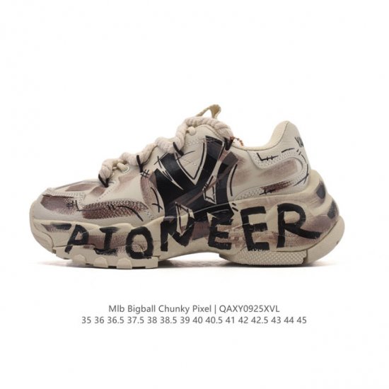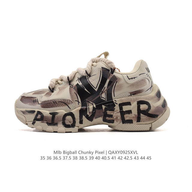 公司级 韩国Mlb 男女复古老爹 Mlb Bigball Chunky pixel 复古印花 解构绑带 双鞋带 男女厚底增高纽约洋基队老爹运动休闲跑步鞋 ,Ml