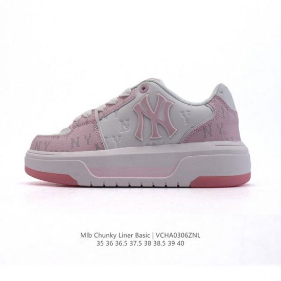 【公司级】Mlb Chunky Liner Basic 人气单品学长鞋系列新款 轻量增高厚底百搭休闲运动板鞋 女轻便胶鞋 高级街头休閒品牌鞋。Mlb Chunky Liner 学长鞋是从击球手打出的酷炫直击球中获得灵感,在原有鞋面的再生皮革上,加入了反光滚边细节线,并延续高帮与低帮两种鞋型,为各路潮流选手开辟全新“少年感”动线。除了复古Style,也不乏这种颜色清新一些的款式,干干净净的少年感呼之欲出。