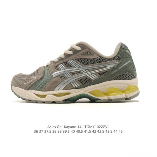 / 公司级 真标 亚瑟士 Asics Gel-Kayano 14 运动休闲透气专业缓震慢跑鞋。采用工程弹性双层再生网格密度鞋面材质,后跟3D可视Gel缓震乳胶物料,