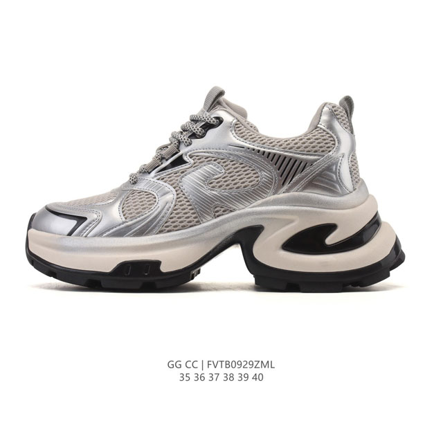 公司级 Gg Cc 女鞋 经典休闲运动鞋奢侈品百搭老爹鞋,在今年仍然很受欢迎。不挑衣服穿,也不挑包,随便搭。它穿上脚超级舒服,很软,还可以增高。鞋面采用的专门定制的小牛皮加透气网面材质,有一定的光泽,手感软糯。不管搭配什么,都是一眼看上去都是高级的存在。只要穿上,就可以把全部视觉拉到脚上,无限拉长双脚,直接在净身高上,增加5Cm+,是所有年轻美眉的第一选择