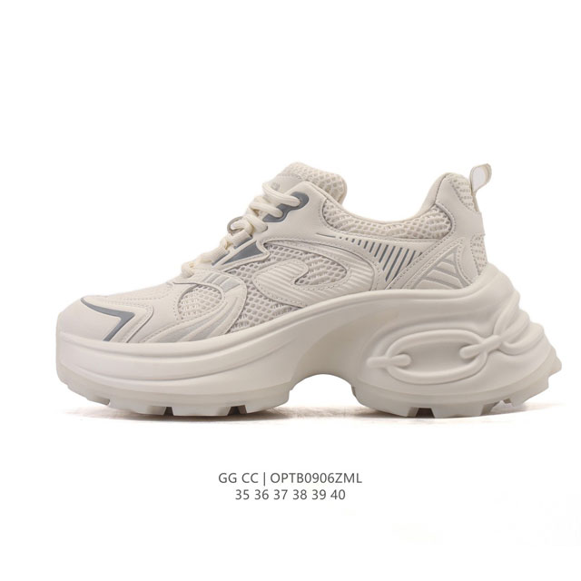公司级 Gg Cc 女鞋 经典休闲运动鞋奢侈品百搭老爹鞋,在今年仍然很受欢迎。不挑衣服穿,也不挑包,随便搭。它穿上脚超级舒服,很软,还可以增高。鞋面采用的专门定制的小牛皮加透气网面材质,有一定的光泽,手感软糯。不管搭配什么,都是一眼看上去都是高级的存在。只要穿上,就可以把全部视觉拉到脚上,无限拉长双脚,直接在净身高上,增加5Cm+,是所有年轻美眉的第一选择