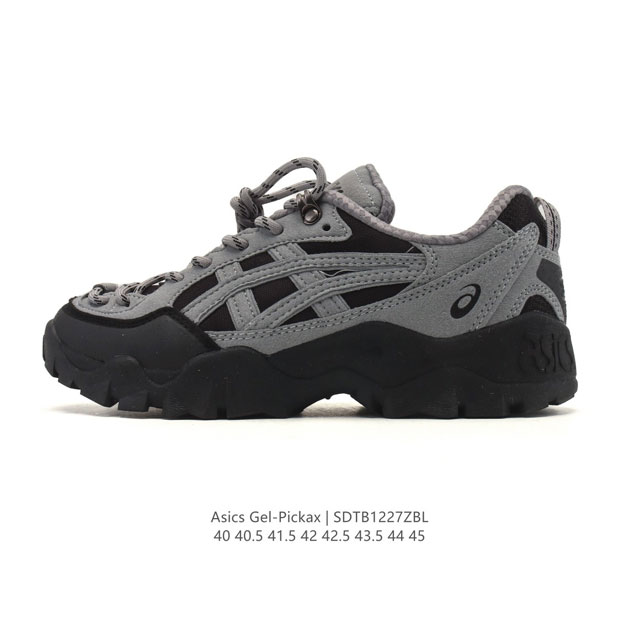 新品公司级 亚瑟士 Asics Gel-pickax 登山 户外运动 抗冲击支撑 减震防滑耐磨轻便 徒步鞋 男女款 日蚀黑 轻便旅游鞋。秋天踏秋一直在穿这双,上脚最直观的感受就是鞋楦,平时穿一些其他品牌的户外鞋,总会或宽或窄,但是这双的鞋楦真的是刚刚好。作为户外鞋鞋底一定要耐磨+防滑,所以橡胶鞋头+橡胶鞋底,是必备的,而且底子越厚安全感越强,但相应的贴合感就越差,鞋身就越重,这双的鞋底厚度刚刚好,而且整双鞋没有拖沓感,脚部贴合的舒适感是很明显的,感觉设计师是真的研究过亚洲人的脚型,诚意十足。#防滑耐磨户外