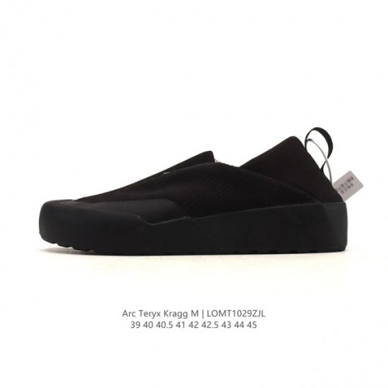 新品公司级 始祖鸟 Arc'teryx Kragg 男款轻量舒适透气一脚蹬户外鞋子 平底鞋 复古运动板鞋。Kragg是始祖鸟 Arc'teryx 推出的一款分类为接近鞋的休闲鞋,专为高山攀登和攀岩后的足部运动恢复而设计。因侃爷的上脚而大火起来,鞋面采用透气、有弹性的单层Spacermesh材料,贴合脚型,同时提供足够的包裹感和舒适度。脚尖和其他易磨损区域使用了Tpu和Vibram橡胶,提供了区域性的保护。外底搭载Vibram Megagrip,这种材质具有良好的防滑和耐磨性能,能够轻松应对各种山地地形。中