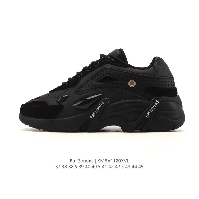 新品公司级 拉夫 西蒙斯 Raf Simons 舒适百搭 低帮 老爹鞋 男女同款Raf Simons橡胶鞋底系带圆头徽标拼接休闲运动鞋 黑色 37拼接设计、穿孔细节、侧面 Logo 压花、圆头、正面系带、Logo印花鞋舌、后置提鞋环、橡胶厚底。 DDD 尺码: 37-45含半码 DDD 编码: Kmba1120Xvl DDD