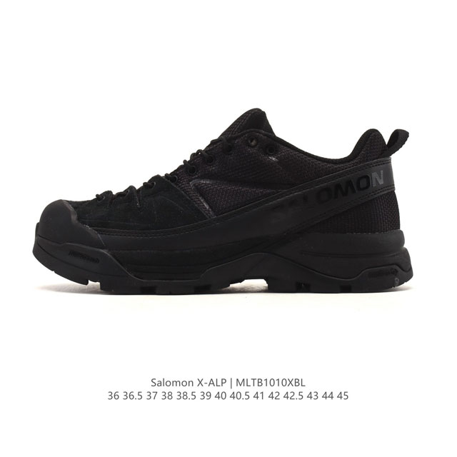 新品公司级 Salomon X-Alp是萨洛蒙推出的低帮越野跑步鞋系列,主打户外功能与城市休闲结合的设计。鞋面材质:采用麂皮拼接与织物组合,内里使用头层牛皮增强舒适度,鞋头延伸至后跟的环绕动力带提供足部保护。 抓地技术:Contagrip大底采用不同密度橡胶化合物,湿地、碎石路抓地力优异,但耐磨性较弱,长期高强度使用后齿纹易磨损。 支撑系统:3D Edgingchassis技术增强侧向稳定性,保持前脚部灵活性,适合技术型地形短途徒步。 城市通勤:低帮设计轻便灵活,缓震中底减少长时间行走疲劳。 轻户外活动:
