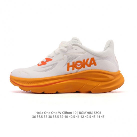 新款 Hoka One One 推出升级 Clifton 10 克利夫顿10代 男女士休闲跑步鞋轻量缓震运动鞋。Hoka One One的Clifton克利夫顿系列是最畅销的公路跑鞋。20年推出的Clifton Edge跑鞋,鞋面为一体化编织材质,采用多孔式花纹设计,在不同位置配以不同密度的织物,外观看起来比较厚实,实际透气性能不错。鞋前布面采用压印式Tpu贴片,以提高鞋面的包覆性能,提供更强有力的保护和支撑。后跟处点缀有的标志性Hoka Logo,更增加了鞋面的层次感。中底采用全新的高回弹泡棉,双色大底
