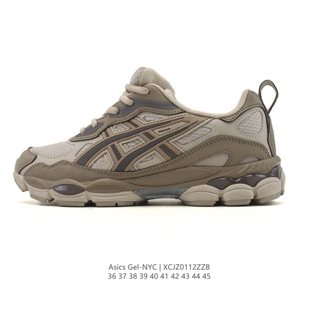 FFF Asicsgel-Nyc复古单品 亚瑟士Asicstiger 新款休闲鞋 厚底街头运动休闲鞋,Asics亚瑟士推出全新Gel-Nyc,彰显纽约都市活力。这次的新系列融入了多个版本Gel的经典设计风格,广受好评。其设计灵感来源于Gel-Nimbus 3,Gel-Mc Plus V 和 Gel-Cumulus 16 这些往日经典鞋款。Gel-Nyc使用Gel-Cumulus 16鞋款的鞋楦设计,展现了独特的现代化美学。鞋底采用了轻质发泡材料,并在后跟和前掌处采用了Asics亚瑟士核心科技 Gel缓震胶