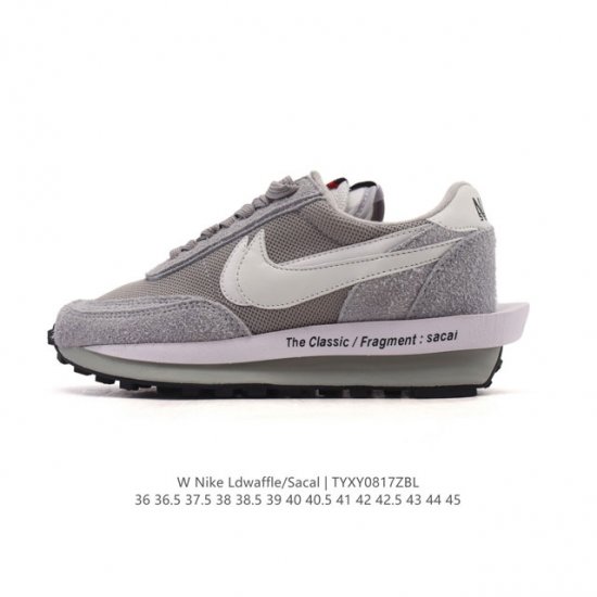 公司级 意大利出 耐克 Nike 跑步鞋 [限量]Nike耐克Ld Wafflesf时尚百搭轻质透气耐磨缓震支撑回弹运动休闲鞋跑步鞋,Nike Ld Waffle Sf Sacai Fragment Grey 鞋子运用了麂皮和网面材质打造,层次感十足,透气性更是一流,双Swoosh与双鞋舌的设计、 呈现出最为熟悉的 Sacai 解构风格,中底印有 The Classic Fragment: Sacai 字样彰显联名身份!!!再看鞋子中底的增高效果 直接解决了当代小伙伴们的“大长腿”焦虑,可休闲 可高街 可