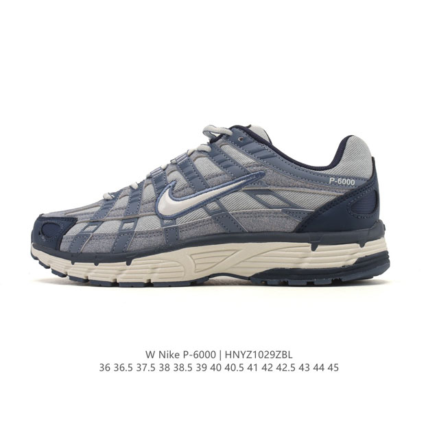公司级 耐克 Nike 男女子休闲运动鞋 P-6000Premium 轻便舒适透气防滑缓震耐磨跑步鞋。P-6000 是一款植根于 0 年代风格的混合款式,让人想起去年再次流行的 Zoom Vomero 5。采用透气网眼布搭配皮革和合成材质覆面,再现 21 世纪早期鞋款外观。活力配色打造时尚外观和运动美学,结合泡棉缓震配置,缔造非凡舒适的日常穿着体验。皮革、织物与合成材质组合鞋面,打造舒适支撑效果。沿袭 Nike Pegasus 25 和 Nike Pegasus 6 的复古设计风格,泡棉中底,轻盈缓震,缓